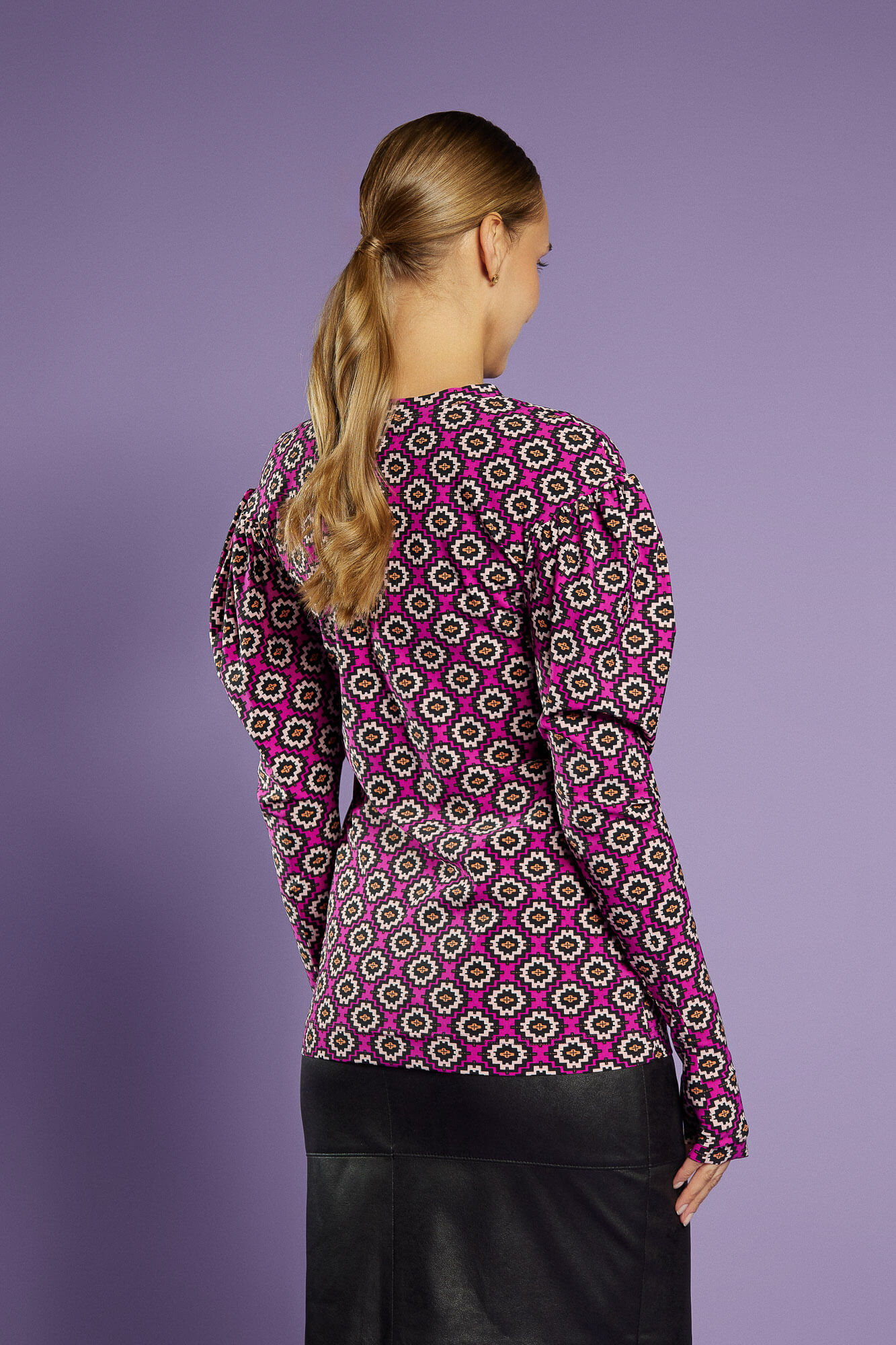 Bluzka z długim rękawem to elegancka propozycja na wiele okazji. Zakładana na palec, dodaje jej oryginalności i nowoczesnego charakteru. Rękawy, które u góry są marszczone, nadają całości lekkości i romantycznego wyglądu. Dzięki temu fasonowi bluzka świetnie komponuje się zarówno z jeansami, jak i spódnicą. Jest to idealny wybór dla kobiet ceniących sobie unikatowe detale w codziennych stylizacjach. Bluzka występuje w kilku wersjach kolorystycznych: granat, czerń, beżowym, różowym z nadrukiem i musztardowym.