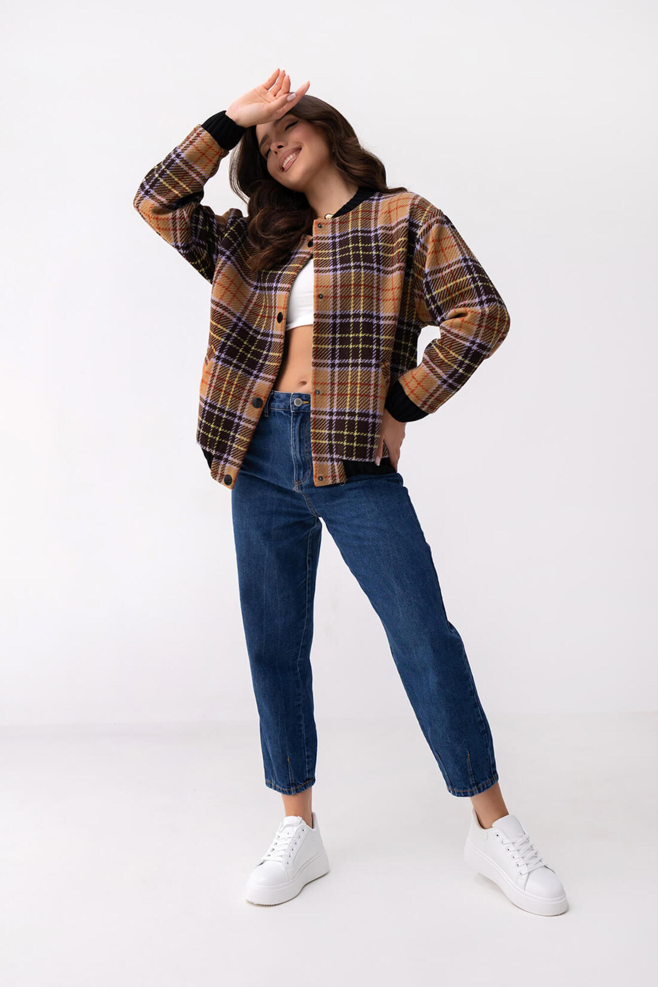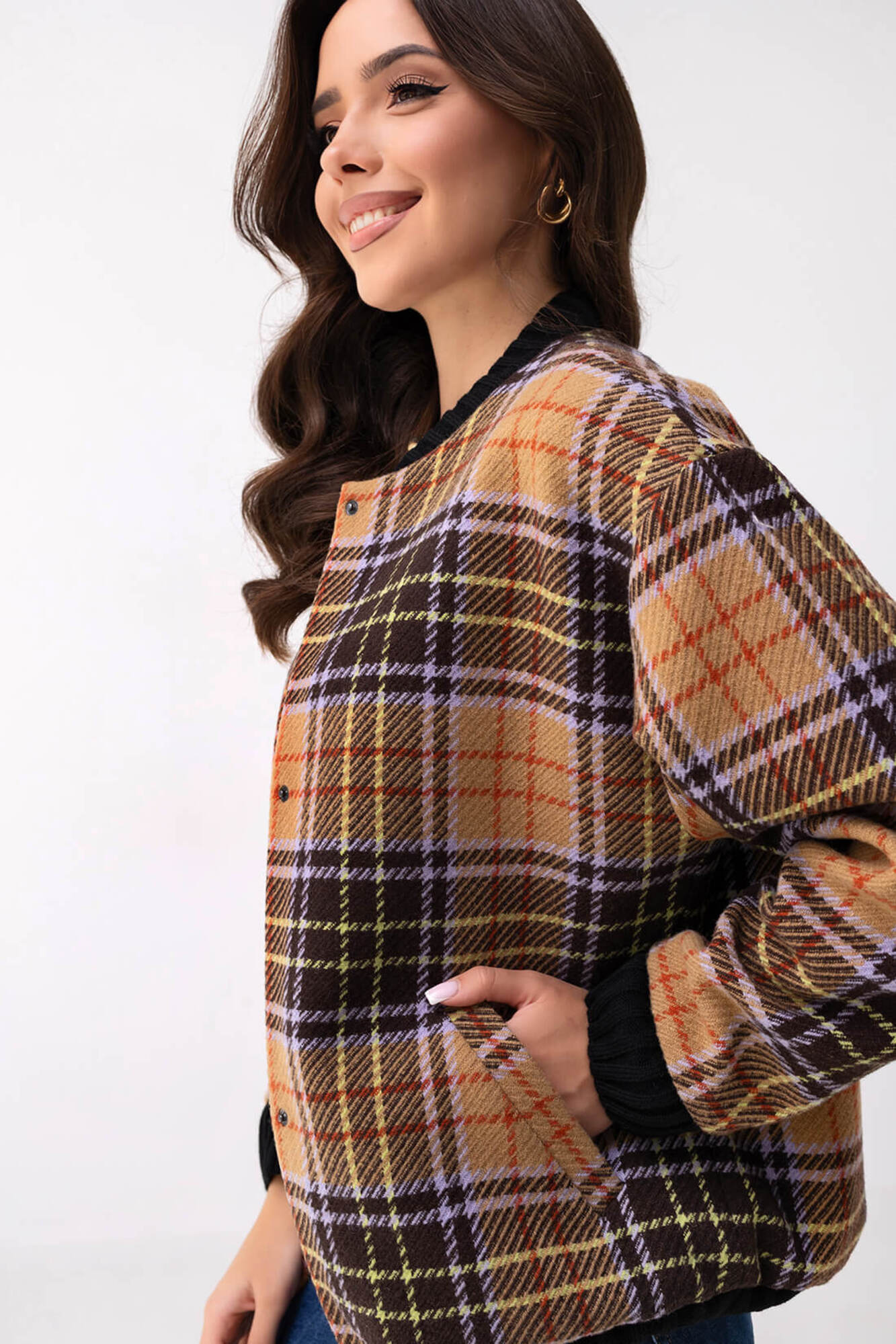 Damska bomberka w beżową kratę, to idealny wybór dla kobiet poszukujących uniwersalnej i ponadczasowej odzieży wierzchniej. Uszyta z wysokogatunkowego materiału z wełny, zapewnia nie tylko stylowy wygląd, ale również komfort i ciepło w chłodniejsze dni. Kurtka zapinana jest na napy, co nadaje jej nowoczesnego charakteru i gwarantuje wygodę w codziennym użytkowaniu. Beżowa kolorystyka w połączeniu z kratą sprawia, że model ten doskonale pasuje do codziennych nawet najbardziej basic’owych stylizacji nadając im ciekawego sznytu. To klasyka, która nigdy nie wychodzi z mody.